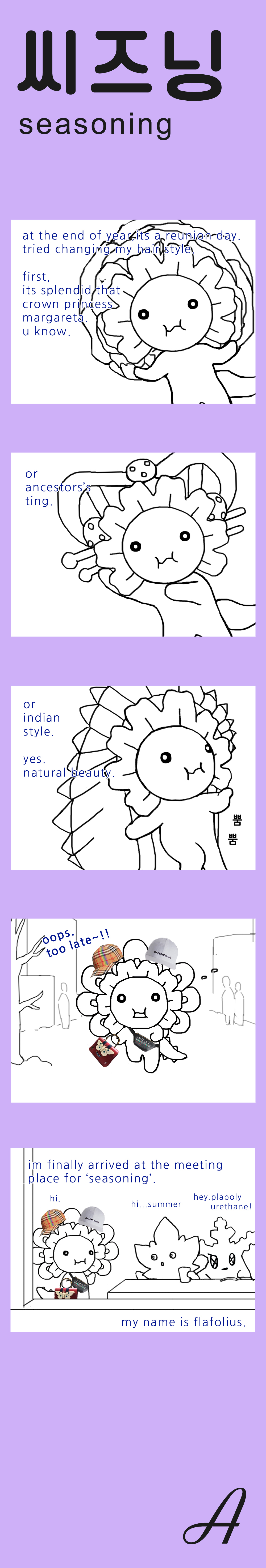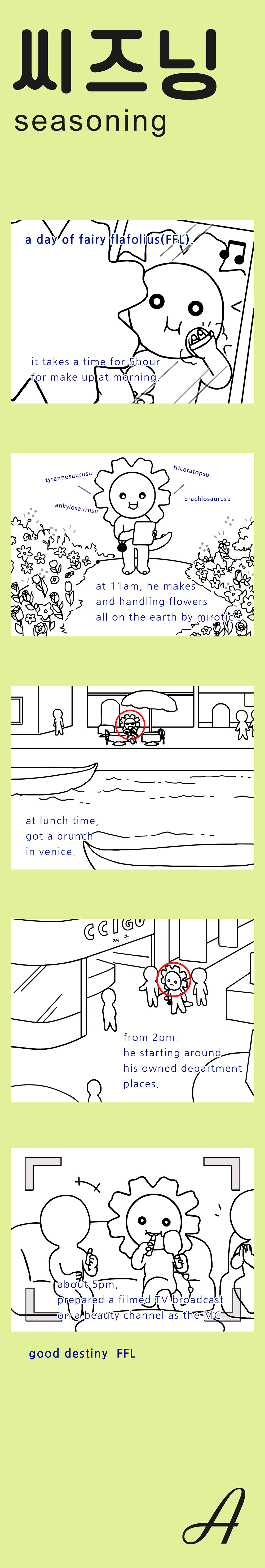 초여름 대표? 꽃 요정?이다. 머리장식의 디자인을 자주 바꾸며 다이어트중인데 항상 무언가 씹고있다. 공룡이름같은 주문을 외우면 꽃들이 피어난다.